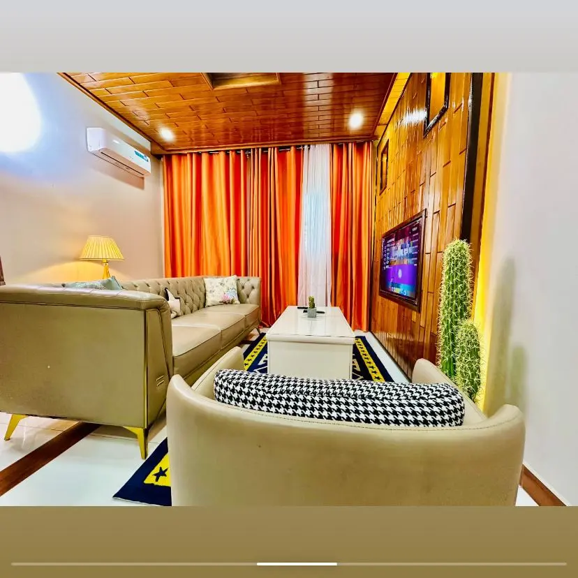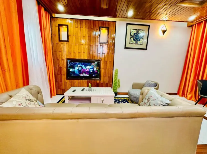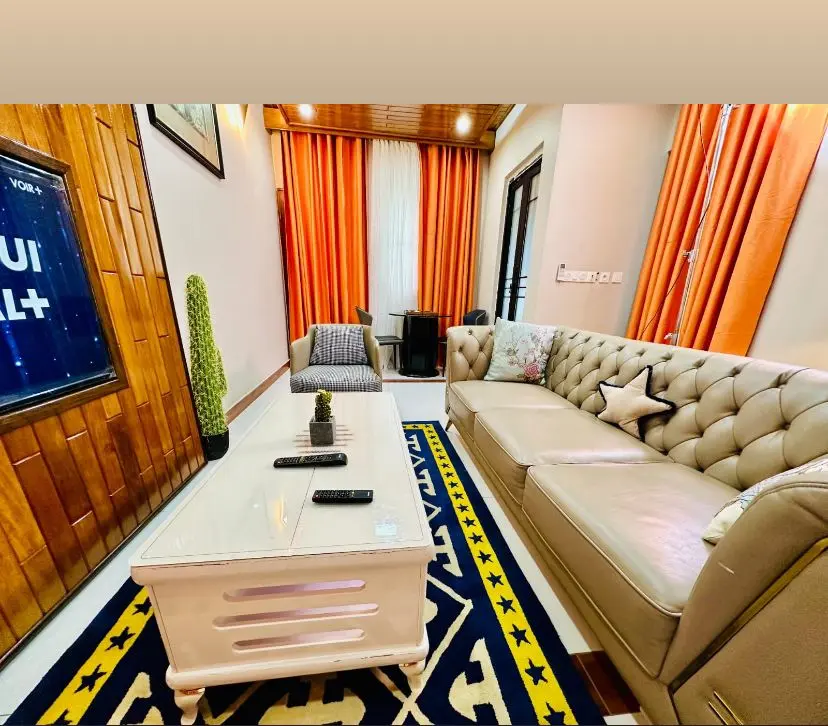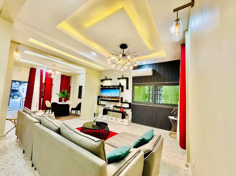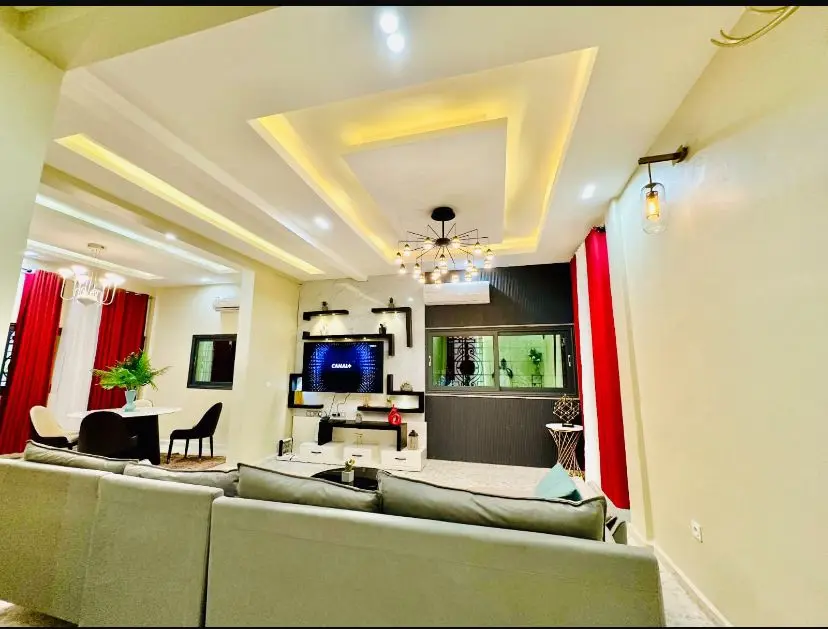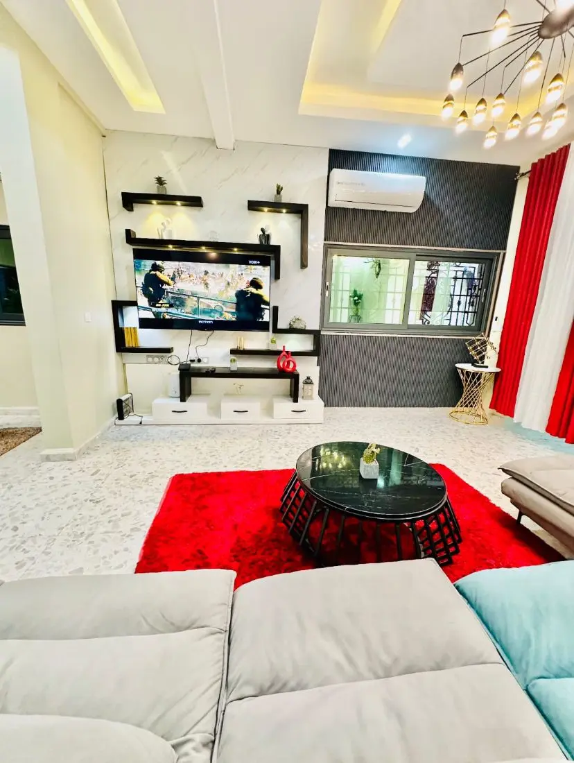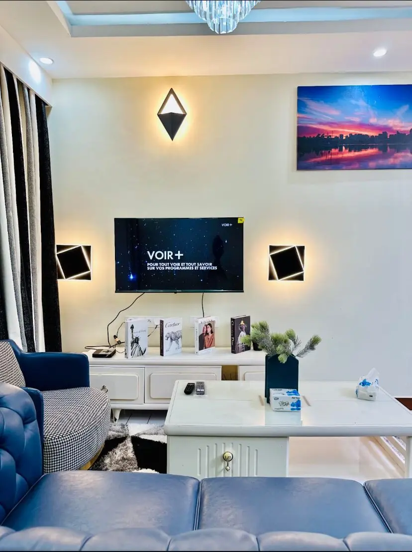 - Grand salon climatisé avec staff lumineux et canapé en cuir très confortable