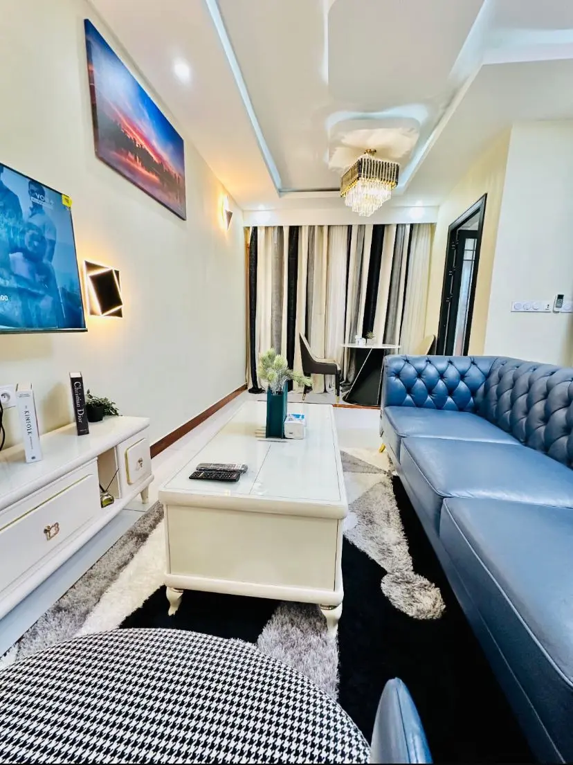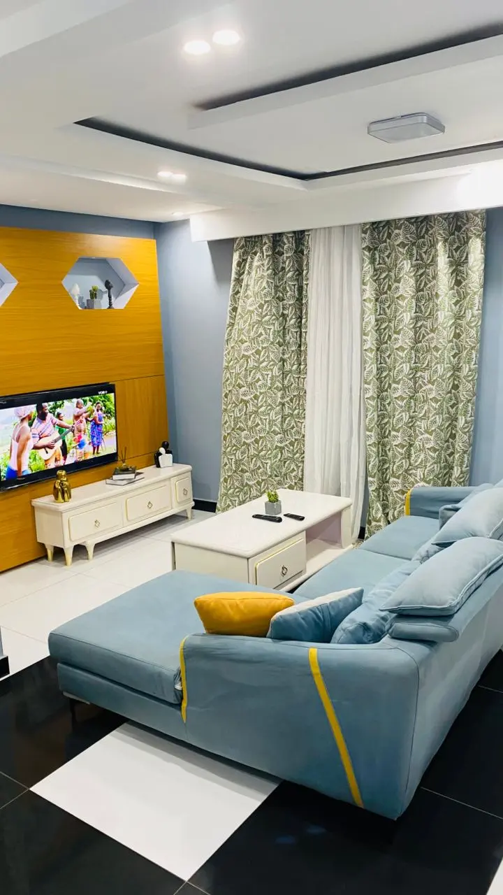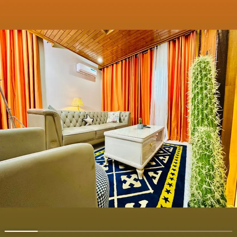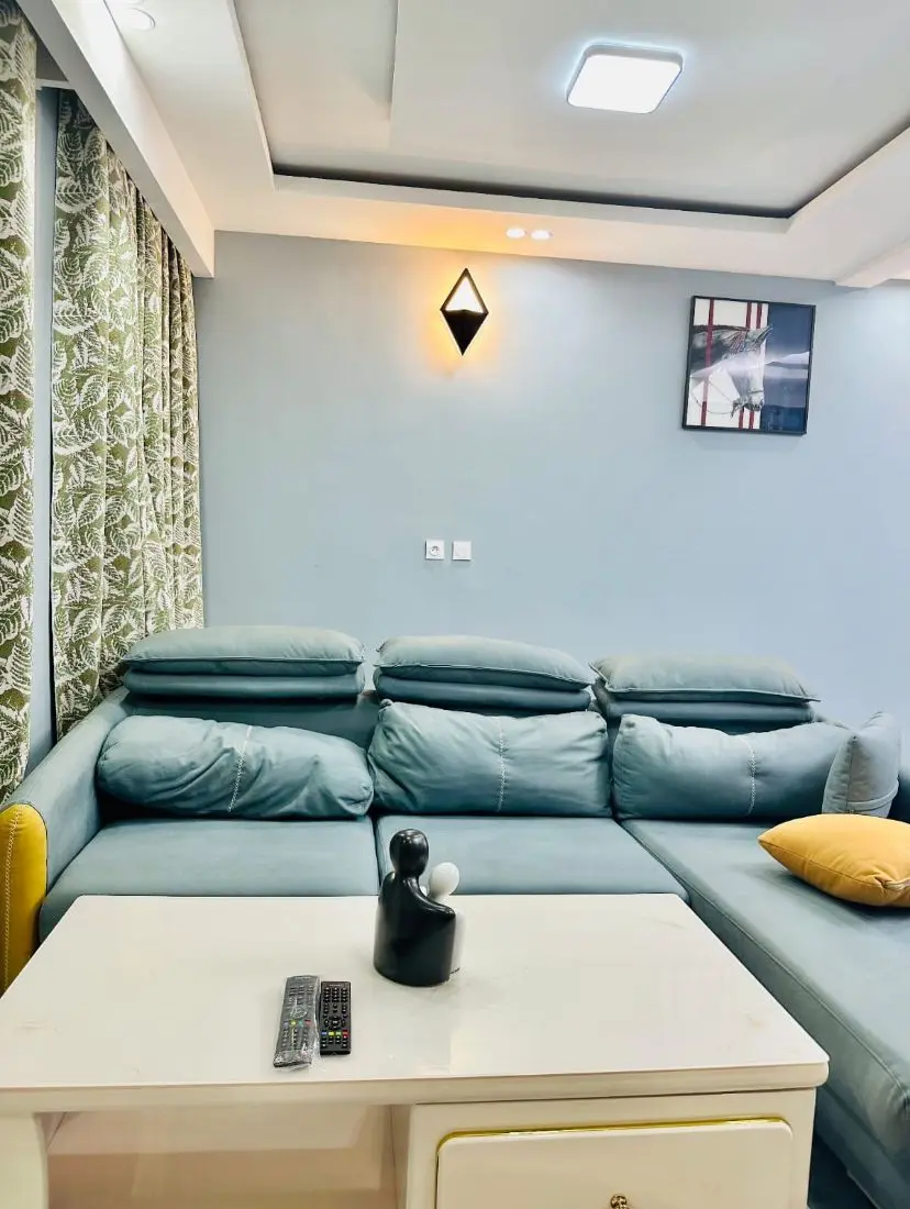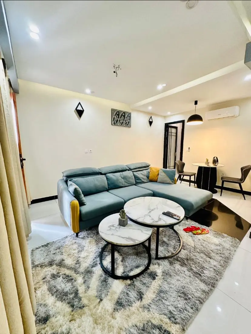 - Grand salon climatisé avec staff lumineux et canapé en cuir très confortable