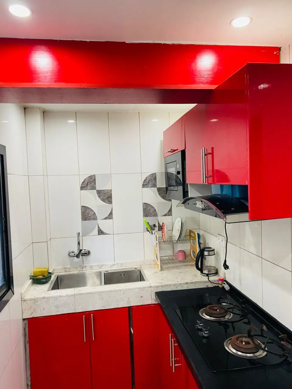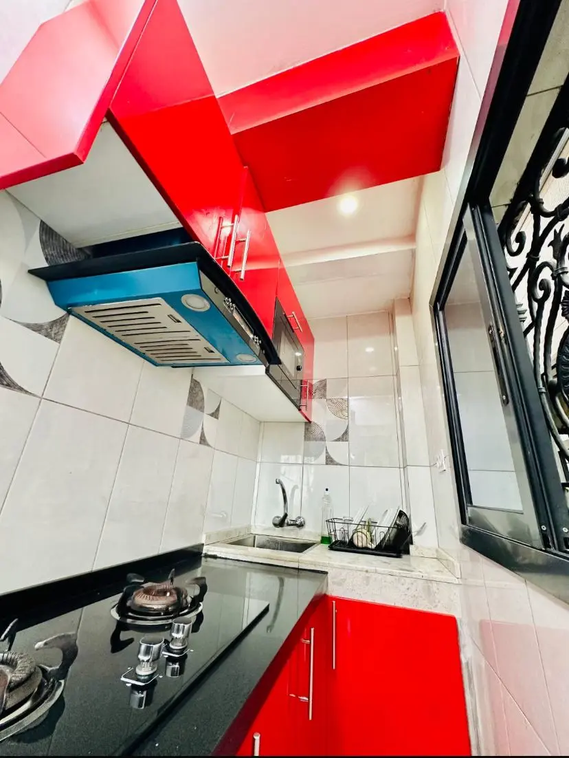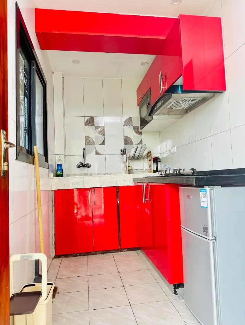 - Cuisine américaine avec accessoires, très bien équipé (micro-onde, plaque, vaisselles)